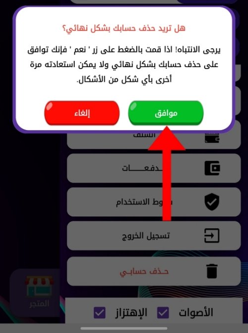 ملاحظة: يرجى الانتباه! اذا قمت بالضغط على زر ( موافق ) فإنك توافق على حذف حسابك بشكل نهائي وسيتم حذف كل بياناتك من سجلاتنا ولا يمكن استعادته مرة أخرى بأي شكل من الأشكال.